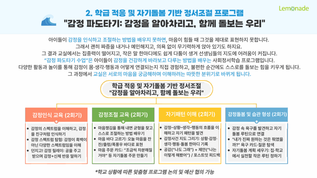 레모네이드 자체 개발 사회정서학습 '삶의 파도타기' 수업